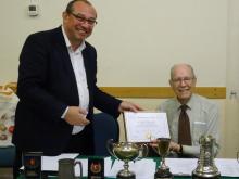 The highlight of the evening was the award of Life Membership to John Cannon in recognition of his sixtieth year as a club member, forty years as Secretary, 13 years as Chairman , his History of Horsham Chess Club (see link on this site) and inestimable other services to make Horsham the successful club it is now.
